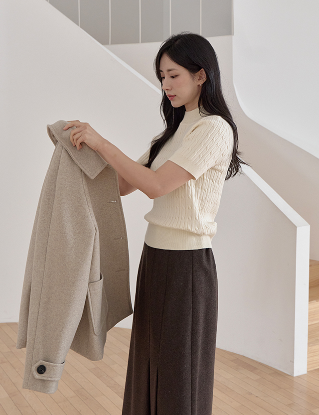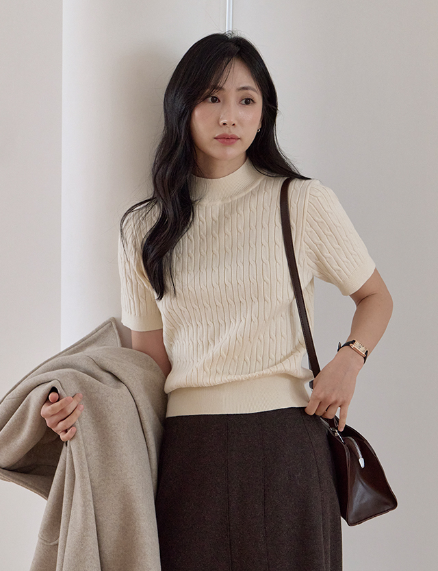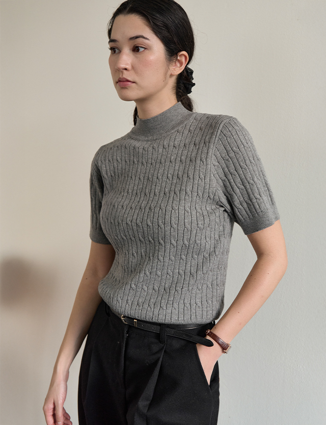 시크미 반하이넥 ケーブル編み 半袖 ニット 84538