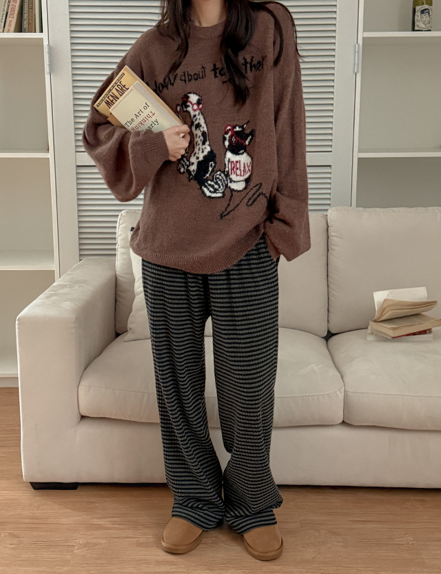 칼로리컷 쿠앤크 ボーダー スパン 좋은 ゴム パンツ 84467