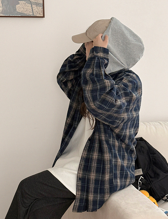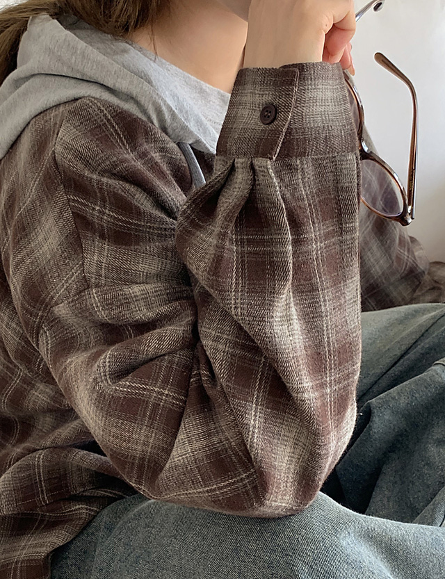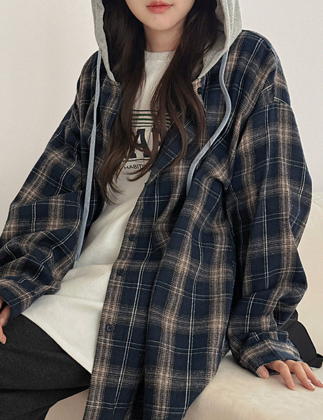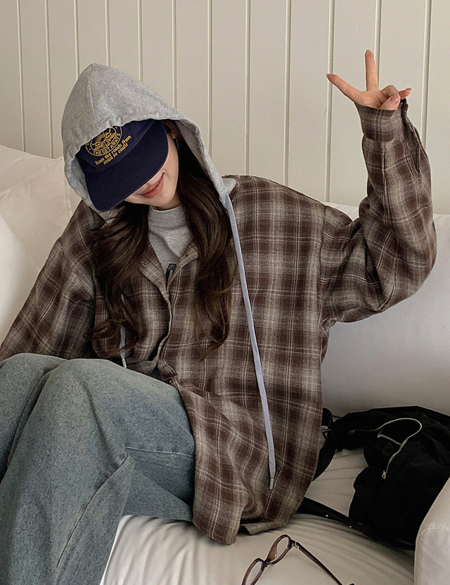 글룩 리얼루즈핏 配色 フード チェック シャツ 84242