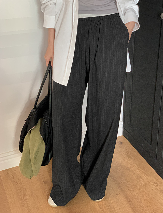 아넨티 ゴム ワイド ストライプ スラックス 84578