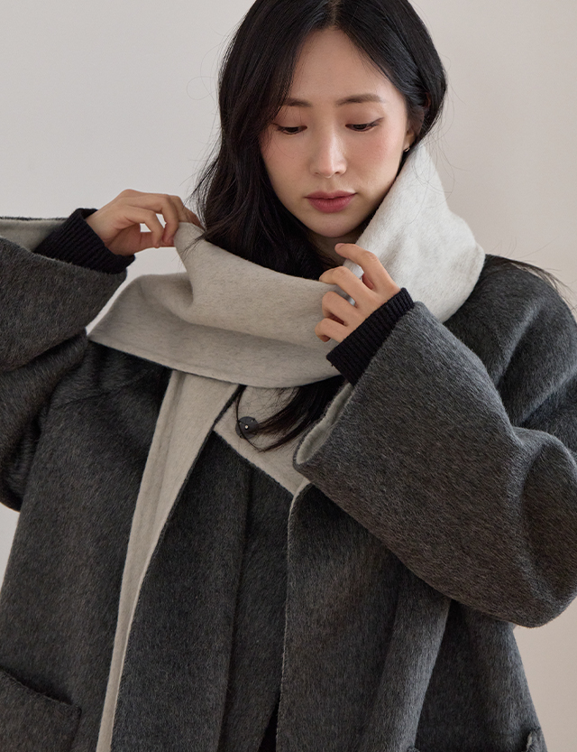 [머플러세트] 겨ウール감성 ハーフ ウール 핸드메이드 コート 84550