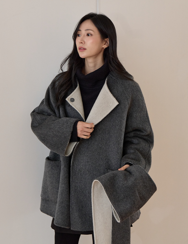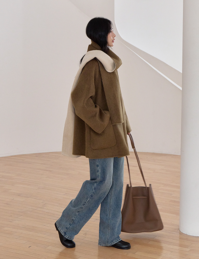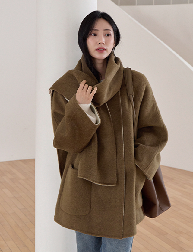 [머플러세트] 겨ウール감성 ハーフ ウール 핸드메이드 コート 84550