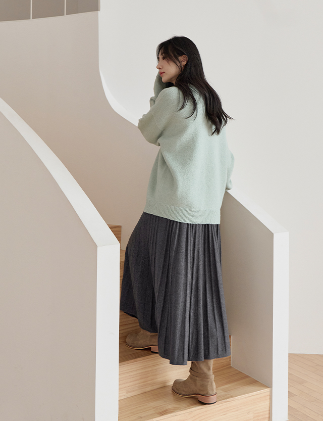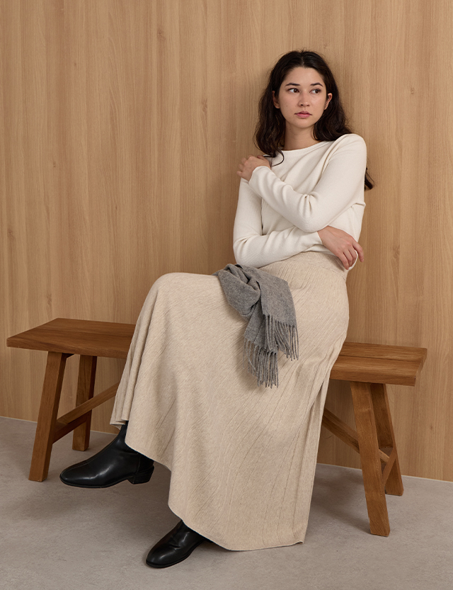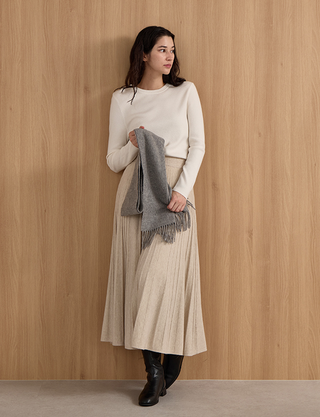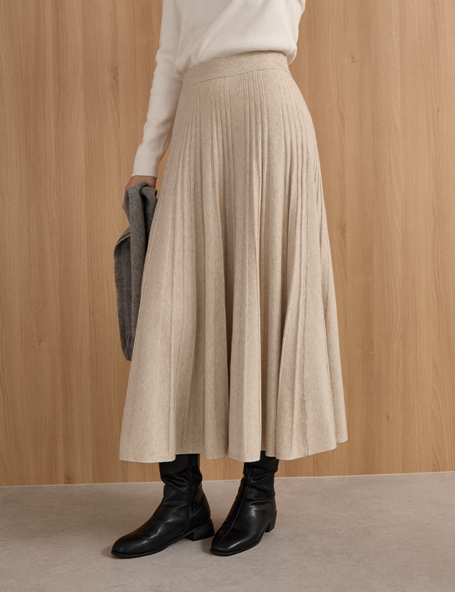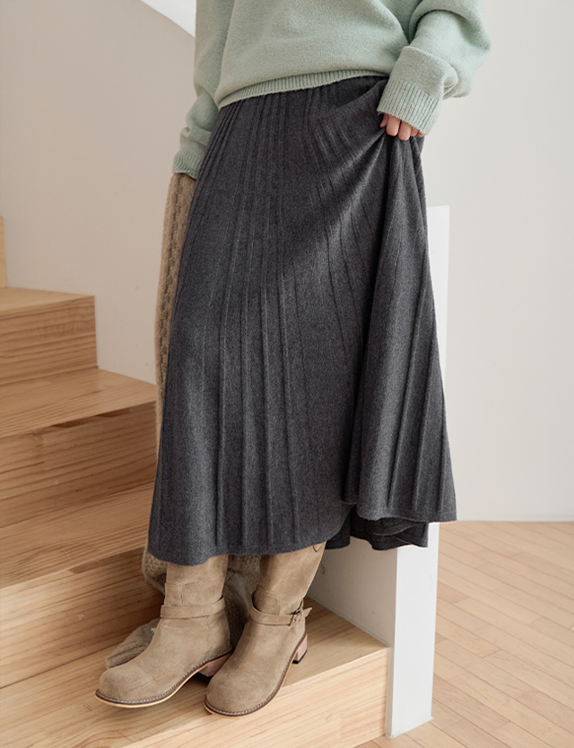 유즈 ゴム ニット プリッツ フレア スカート 84391