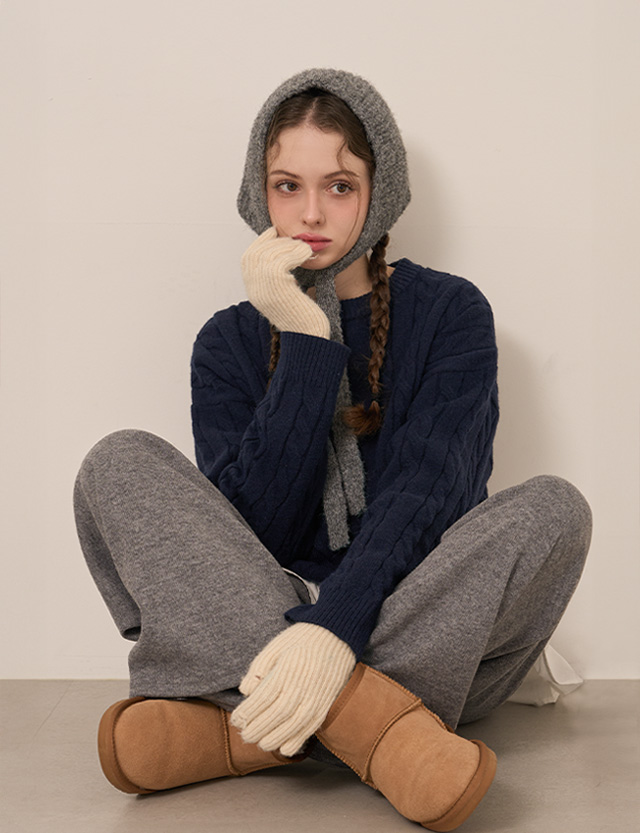 웨이비 ベーシック ルーズフィット ケーブル編み ニット 84640
