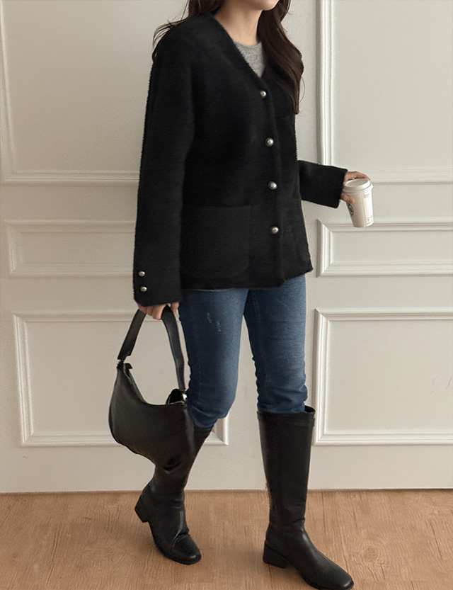 고급미 ルーズフィット Vネック ニット ジャケット 84620