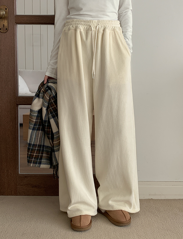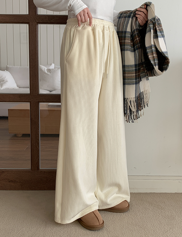 소플리 ミンク 起毛 ワイド ゴム パンツ 84517