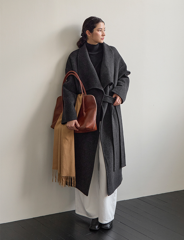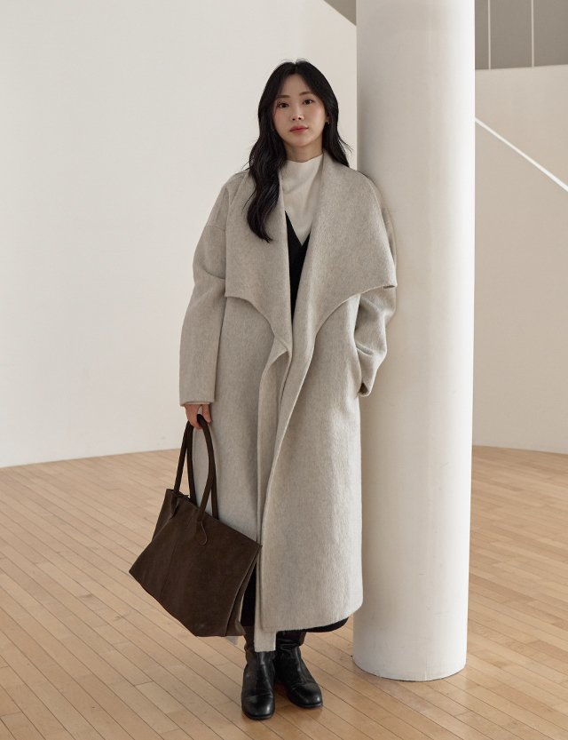[ウール 100%] 女性 빅카라 ロング 핸드메이드 コート 84551