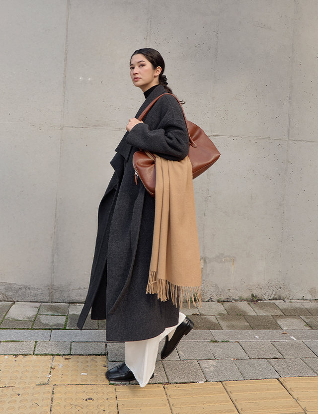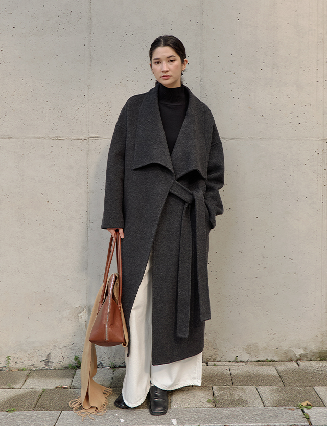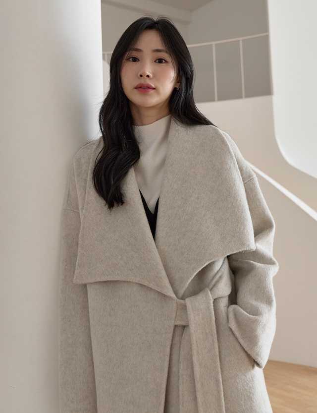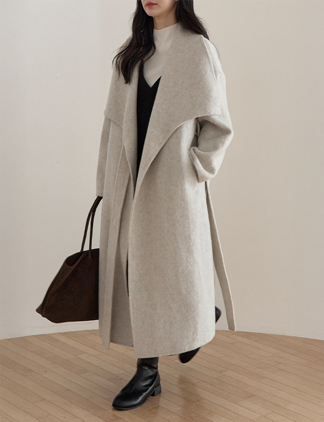 [ウール 100%] 女性 빅카라 ロング 핸드메이드 コート 84551