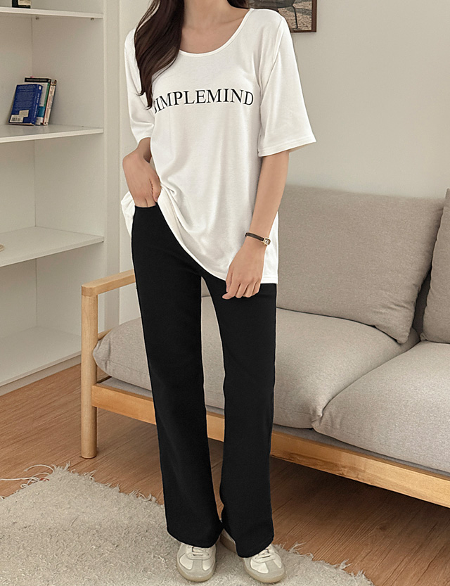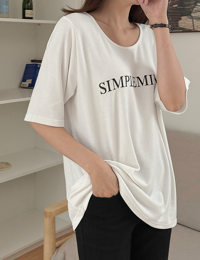 퀸샤 起毛 シンプル 레터링 半袖 ティーシャツ 84634