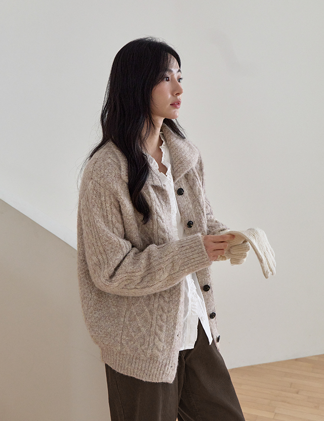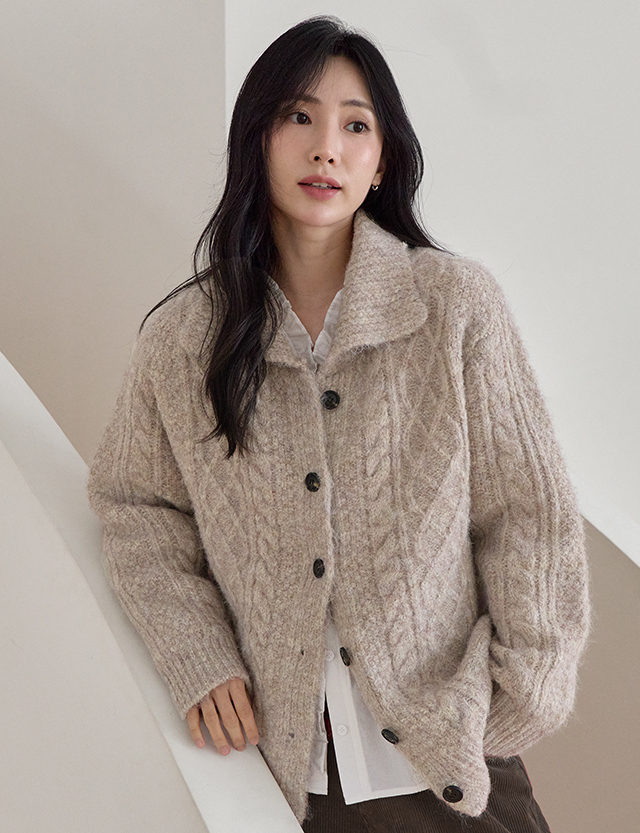 브링 ルーズフィット 보카시 ケーブル編み ニット カーディガン 84544