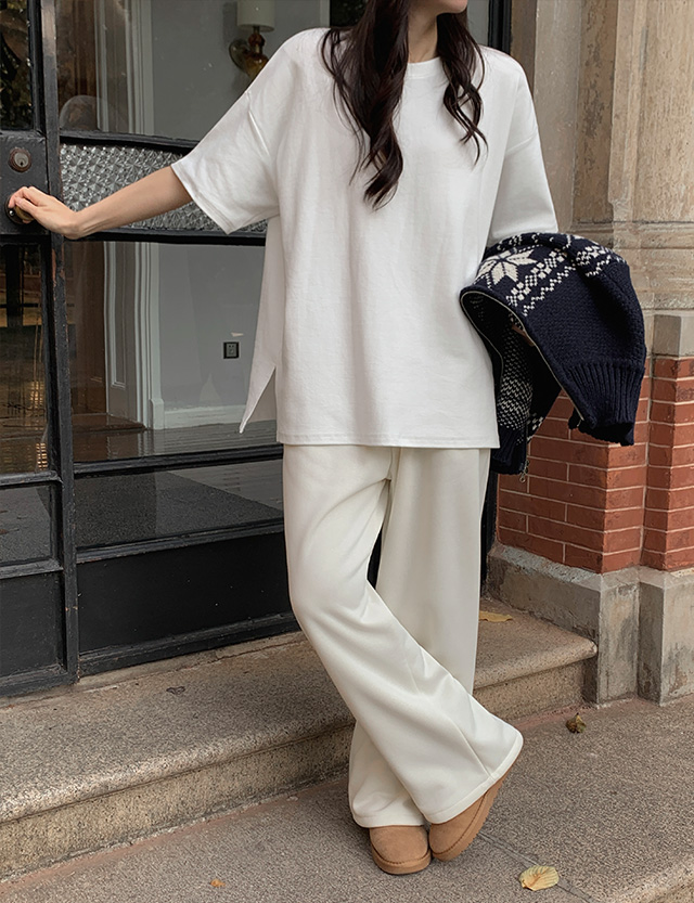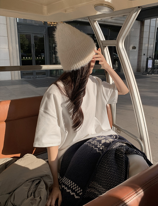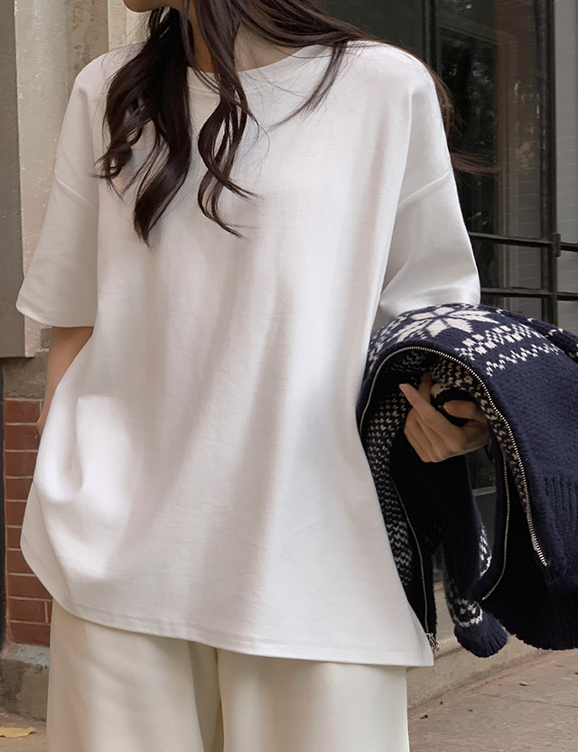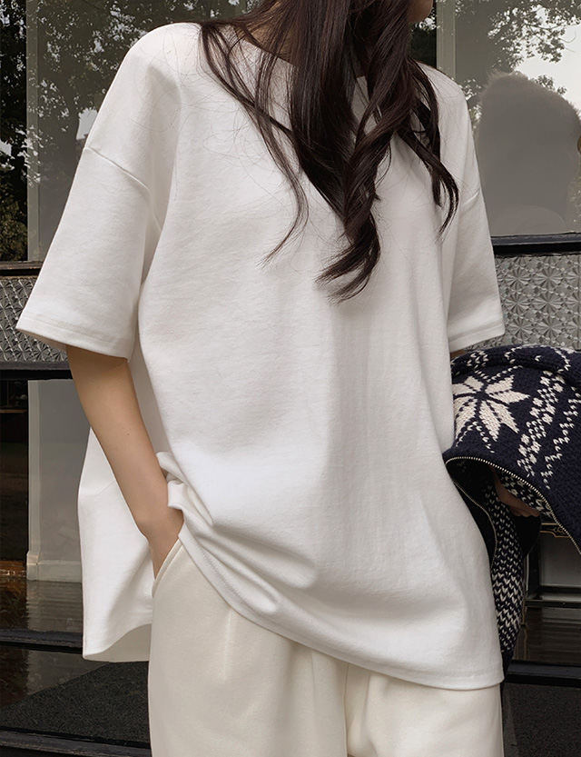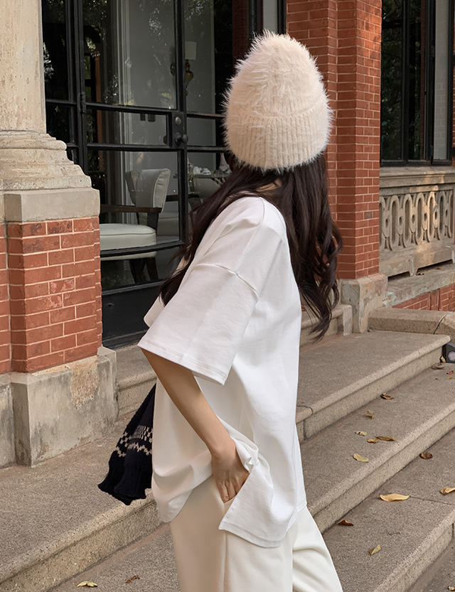 레이어드하기 딱 좋은 ルーズフィット ピーチ 起毛 ティーシャツ 84759