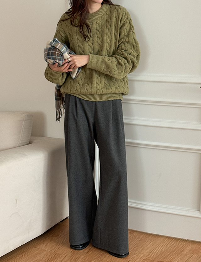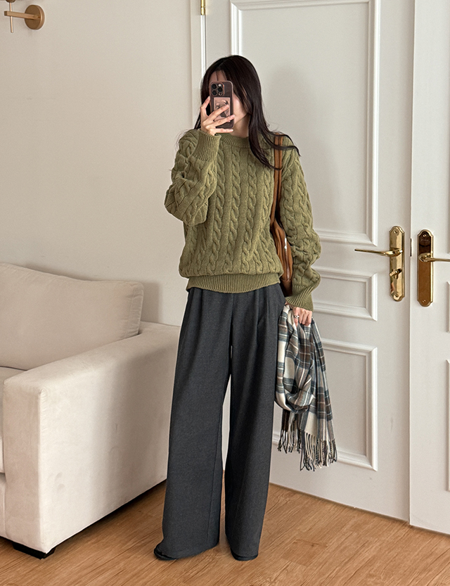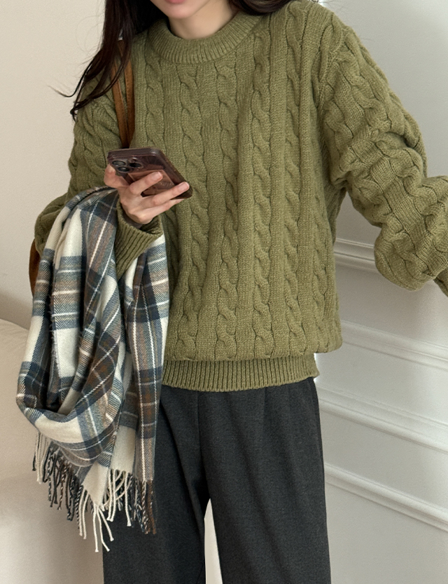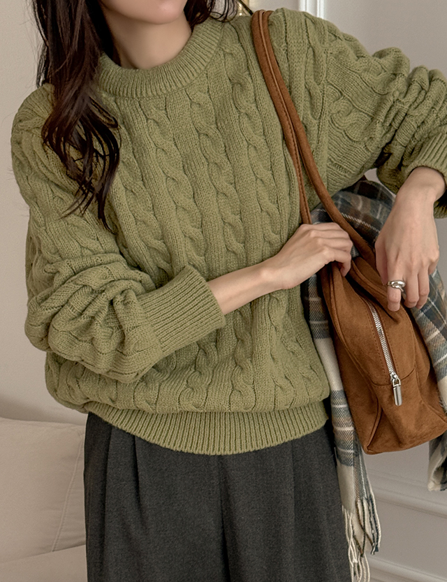 [남녀공용] 리사이클 ケーブル編み ラウンド ニット 84602