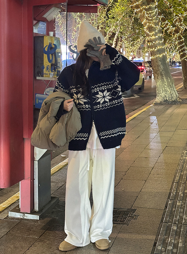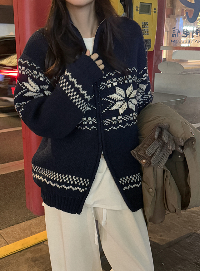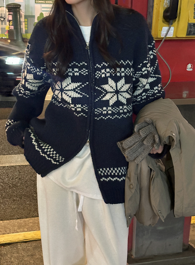 멘숀 ルーズフィット ノルディック ニット ジップアップ 84746