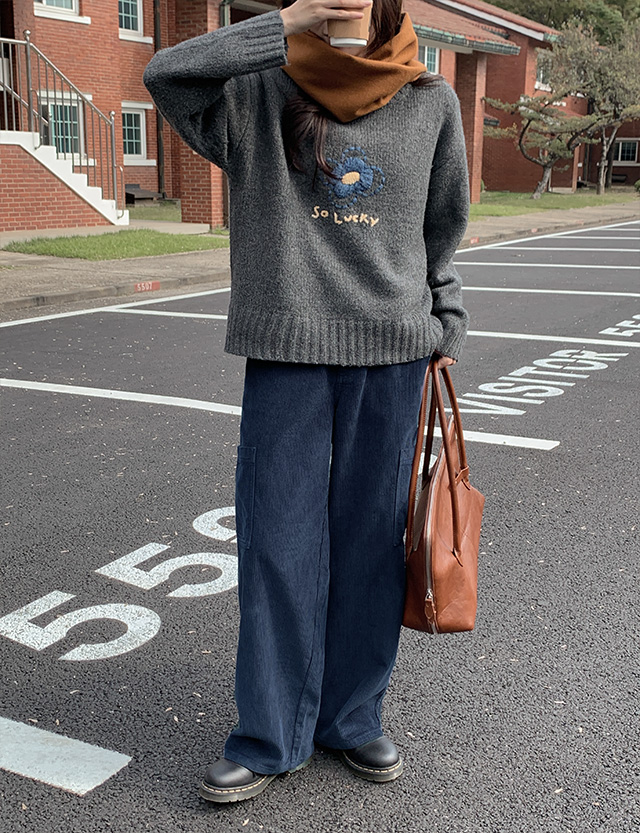 뉴데이 뒷밴딩 ワイド 코듀로이 パンツ 84589