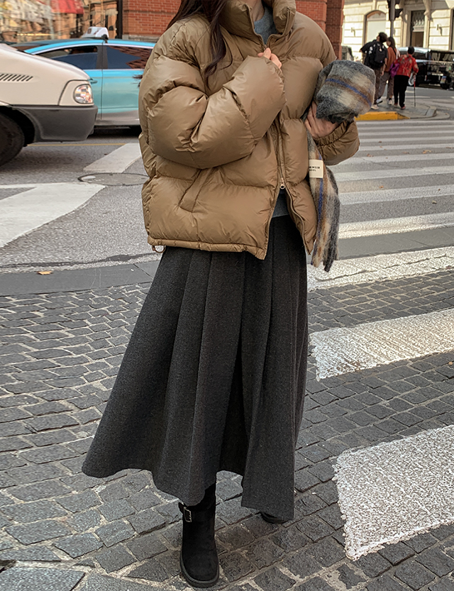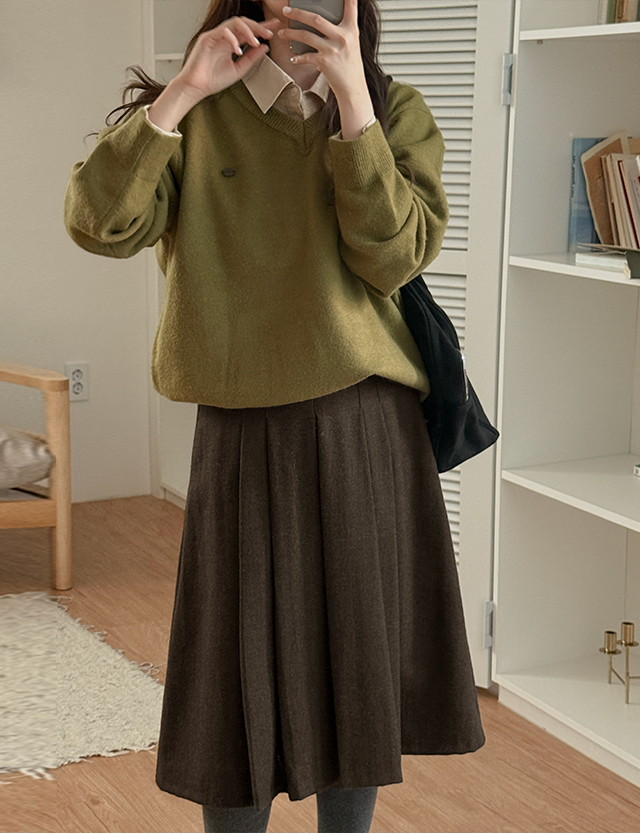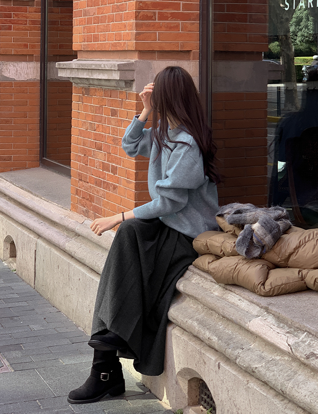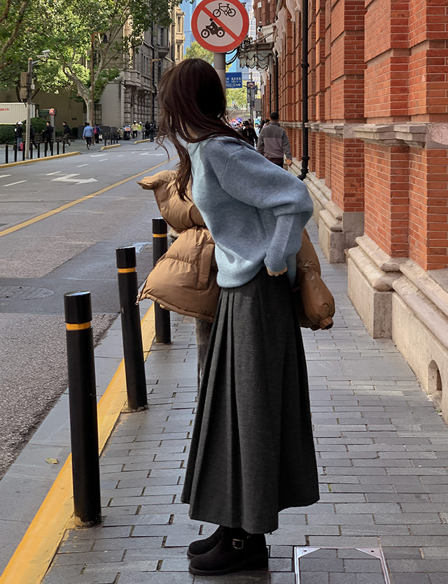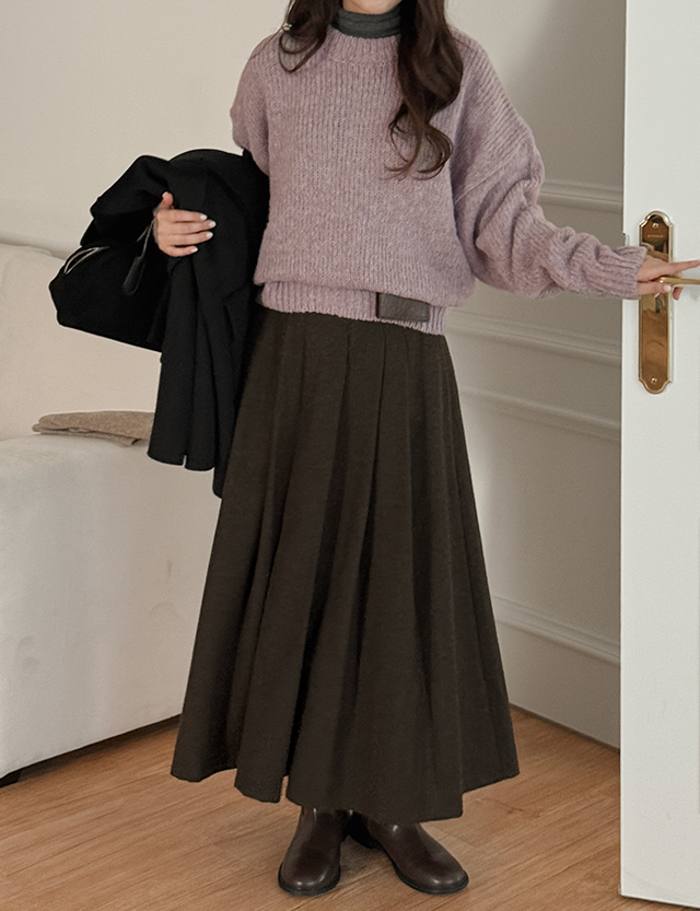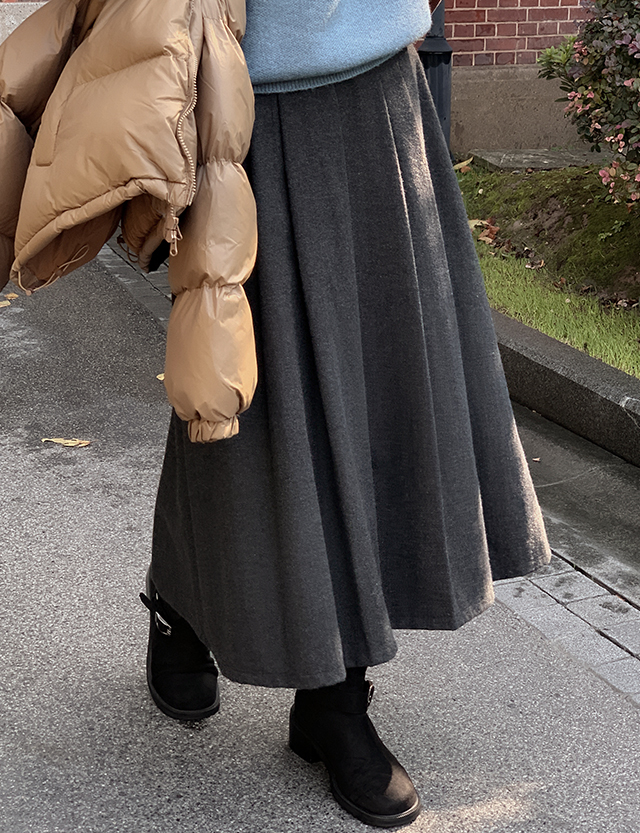 노블릿 헤링본 ウール プリッツ 미디앤롱 スカート 84721