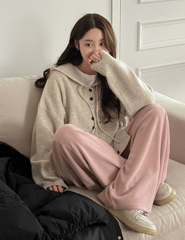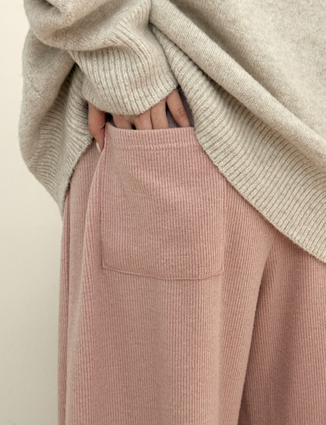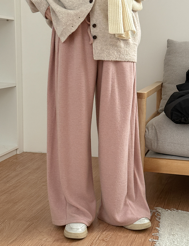 너무 포근해 起毛 リブ編み ゴム ワイド パンツ 84737