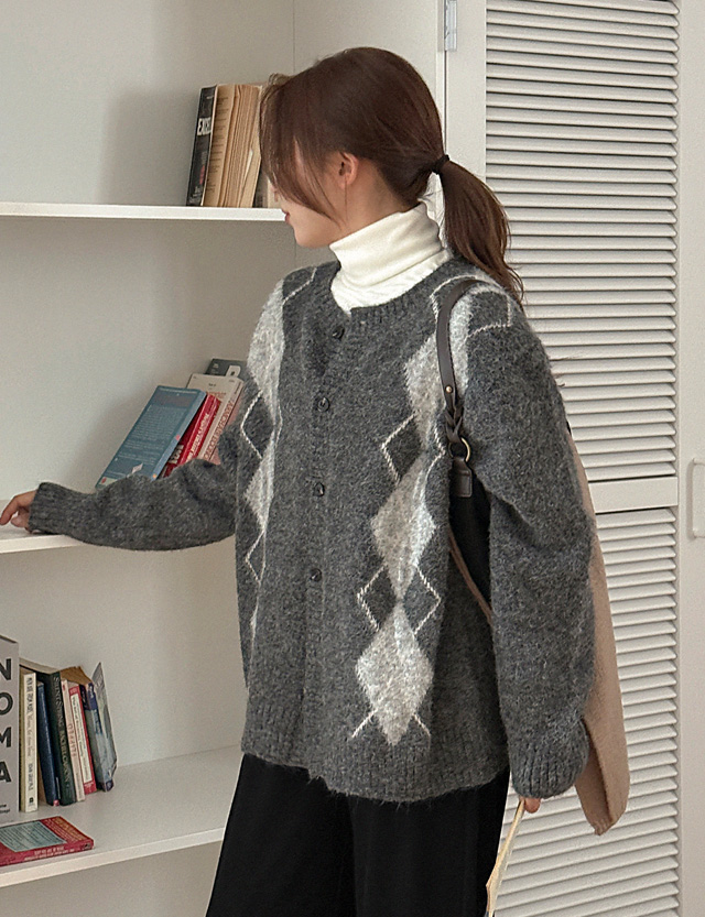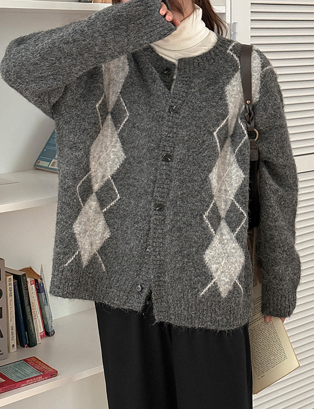 로브클 ルーズフィット 모헤어 아가일 カーディガン 84695