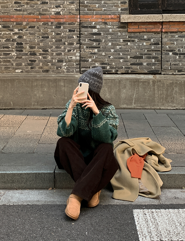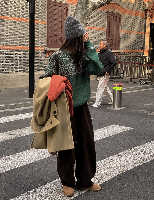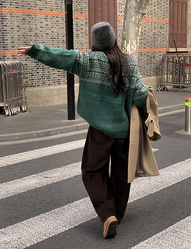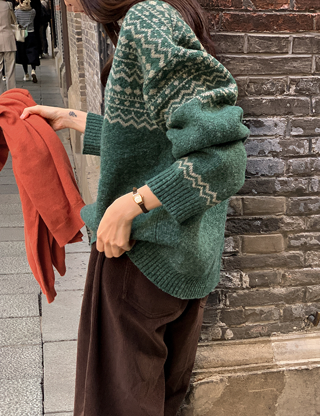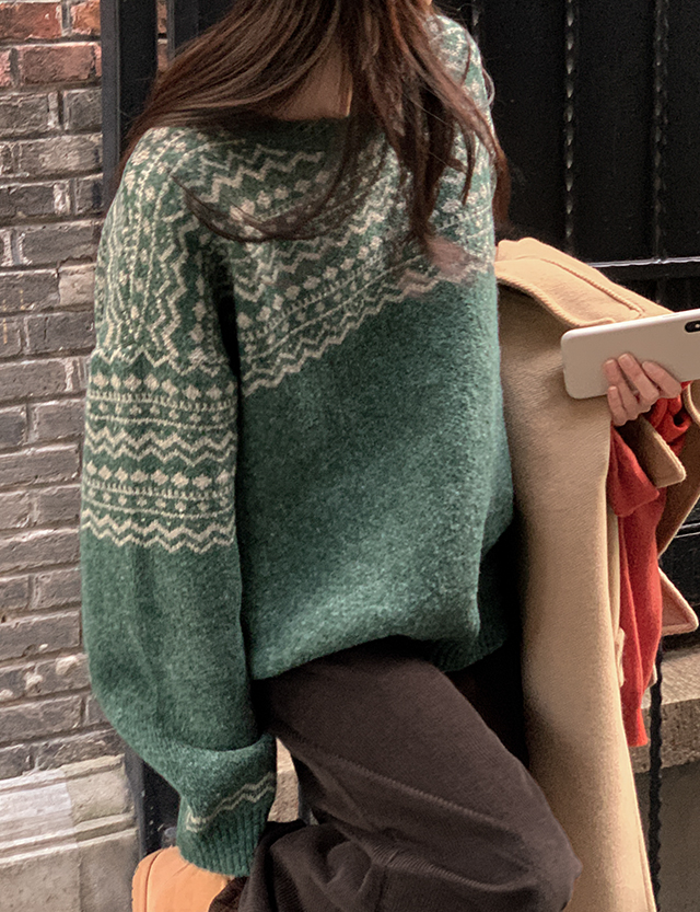 우캉 ルーズフィット ラウンド ノルディック ニット 84745