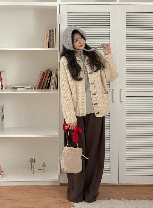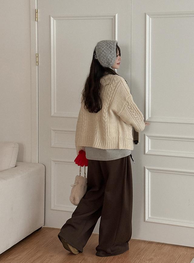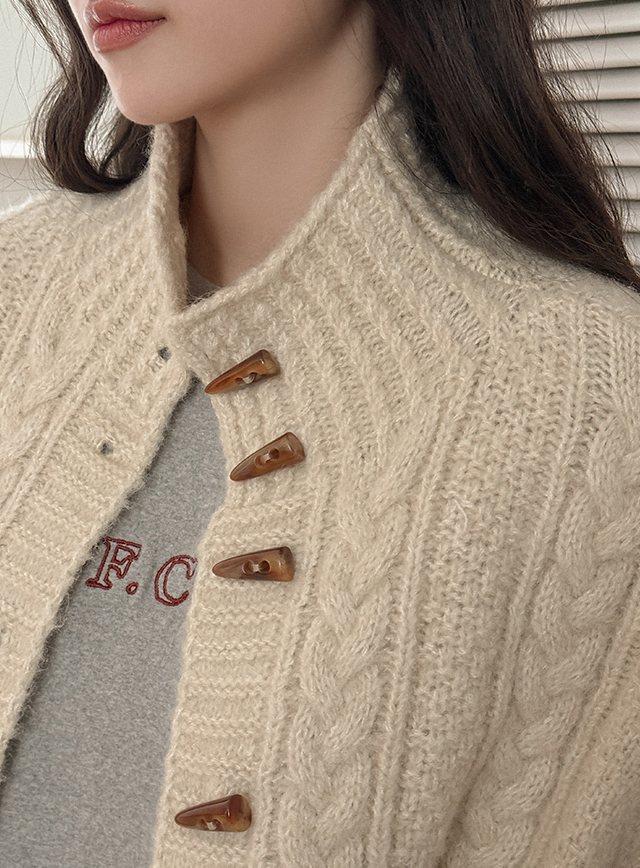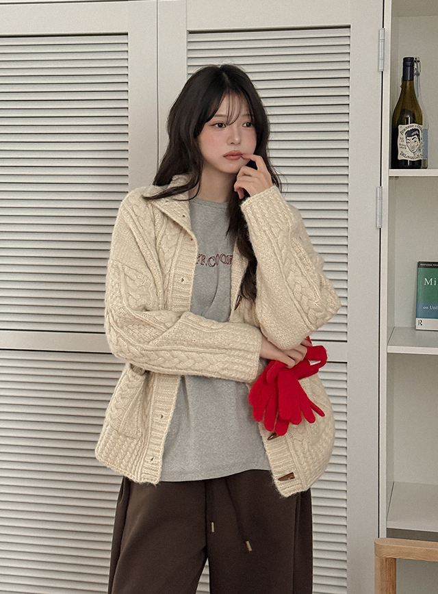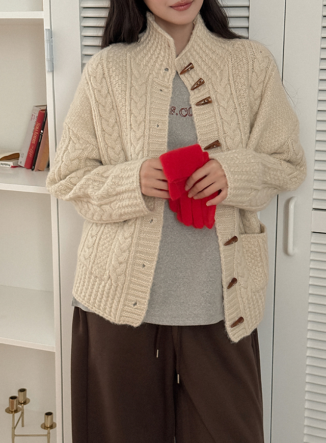 쿠로링 포근 ハイネック ケーブル編み カーディガン 84801