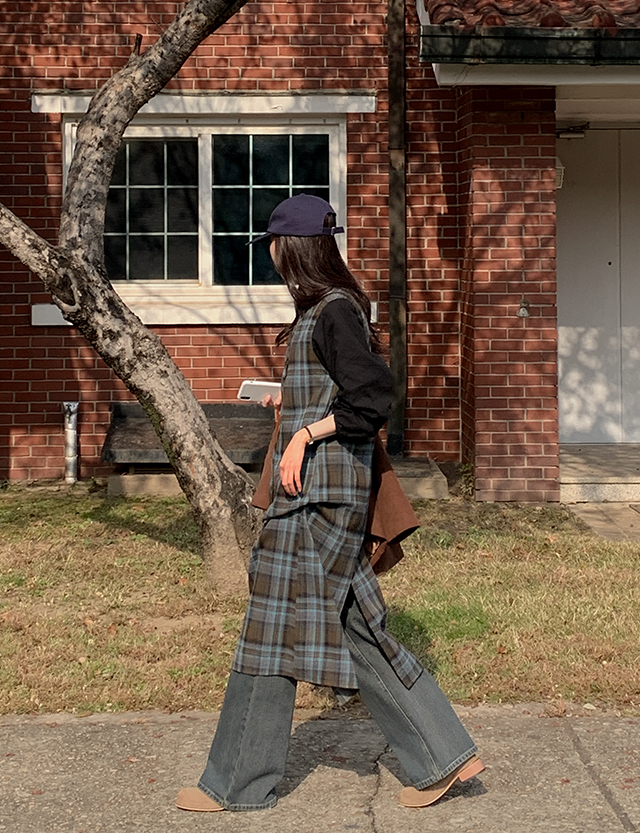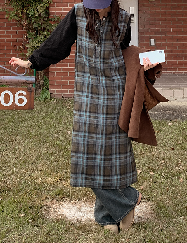 코유미 아일렛 チェック ロング ワンピース 84824