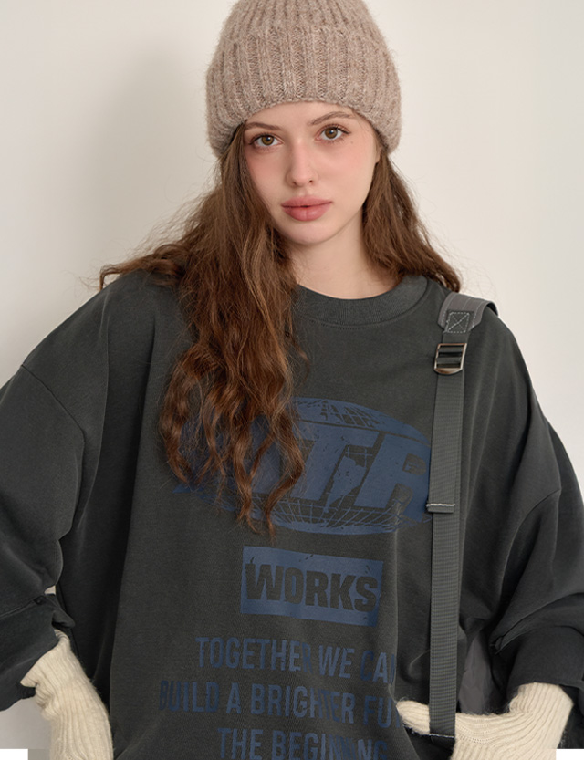 웍스 피그먼트 プリンティング 리얼루즈핏 スウェット 84717