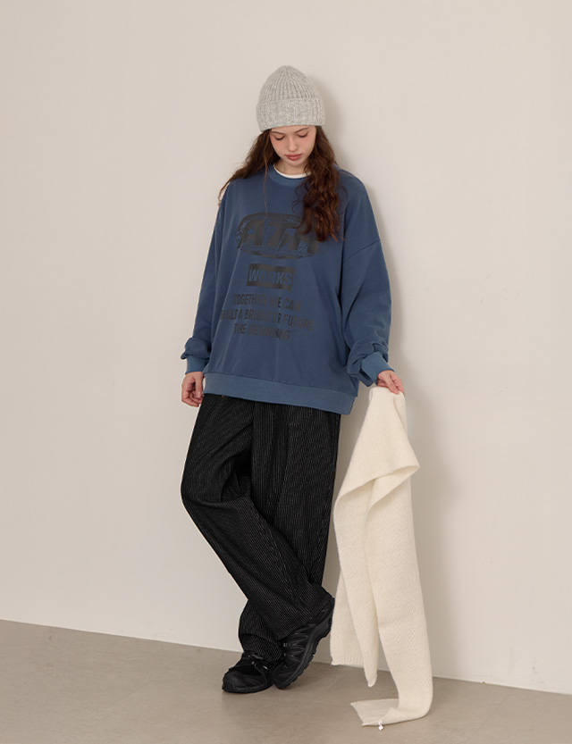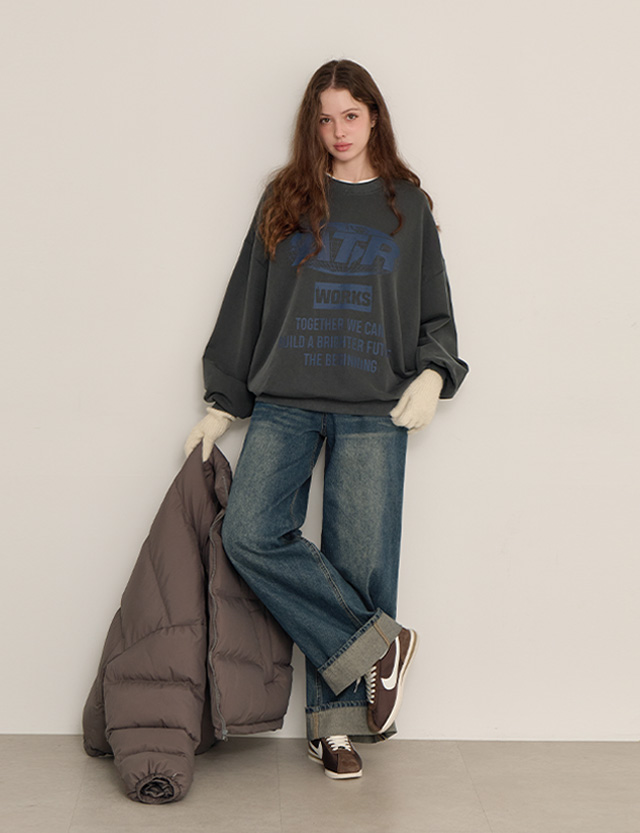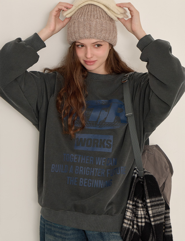 웍스 피그먼트 プリンティング 리얼루즈핏 スウェット 84717