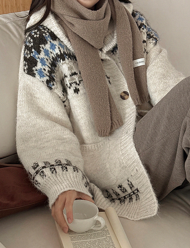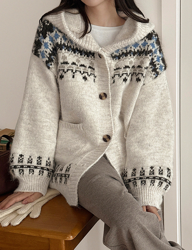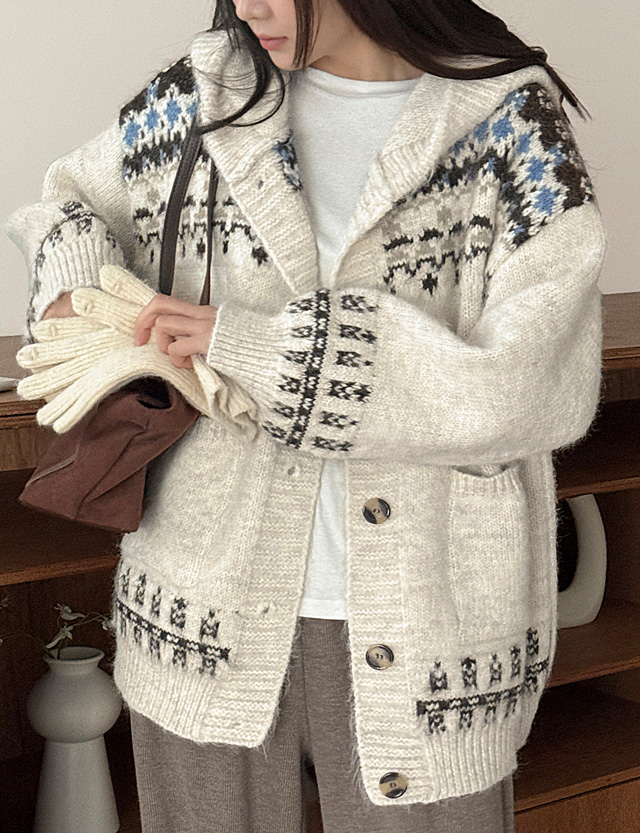 요셀 ルーズフィット プリンティング ニット フード 84868