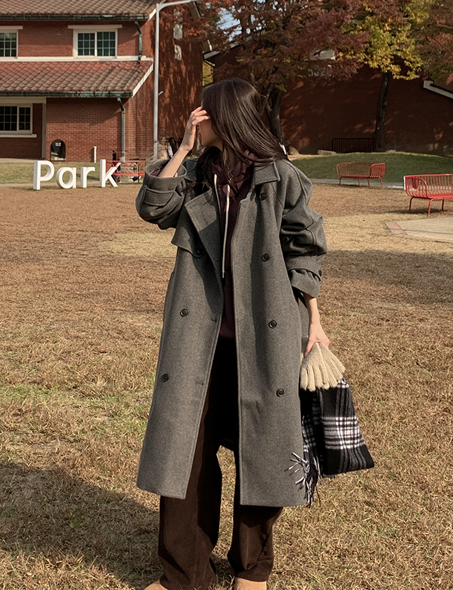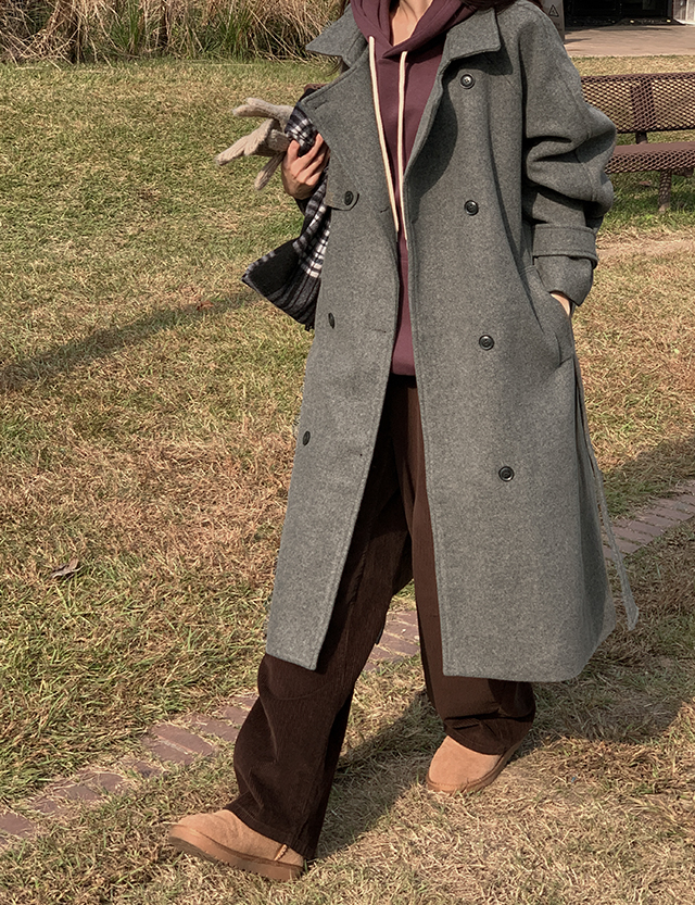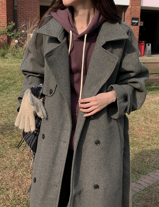 쿼카 ダブルボタン ルーズフィット ロングコート (2オンス) 84827