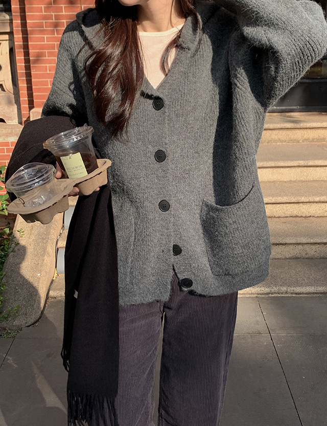 논베른 ルーズフィット フード ニット カーディガン 84749