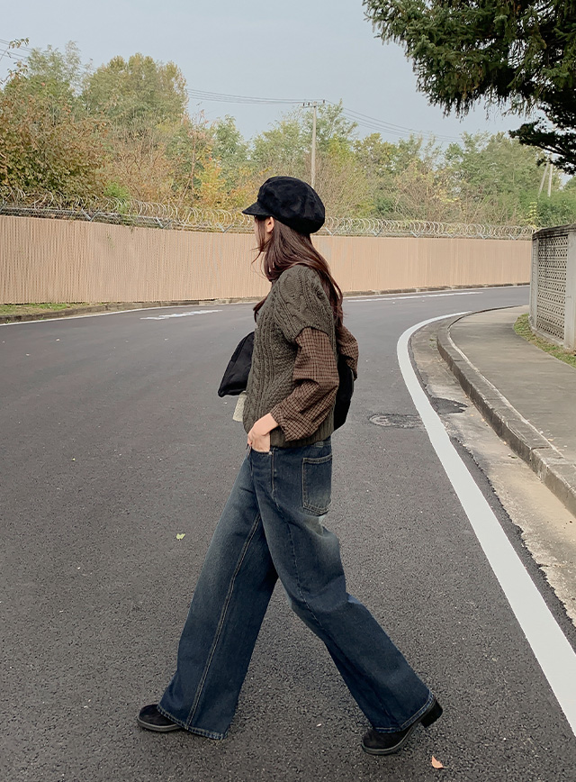 다크베이스 ワイド 뒷밴딩 デニム パンツ 84757