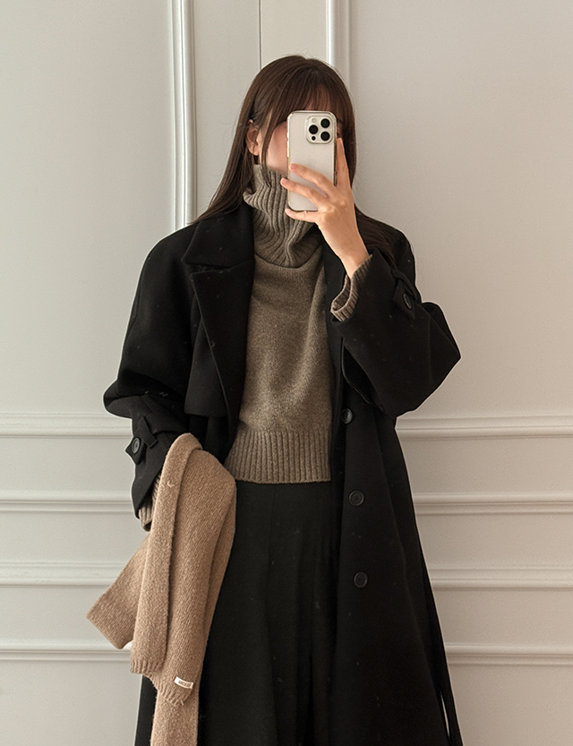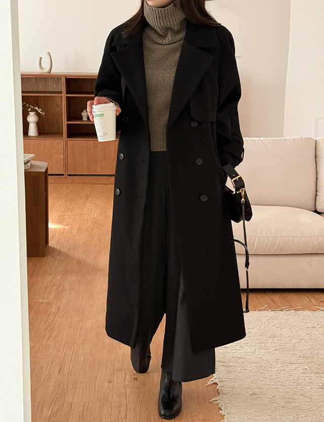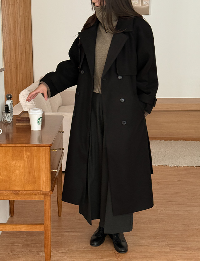 플란디 ベーシック ダブル ロング トレンチ コート 84878