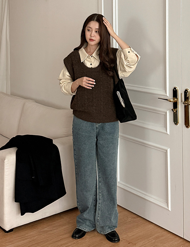 [3가지기장] 쿠티니 뒷밴딩 세미 ワイド デニム パンツ 84740