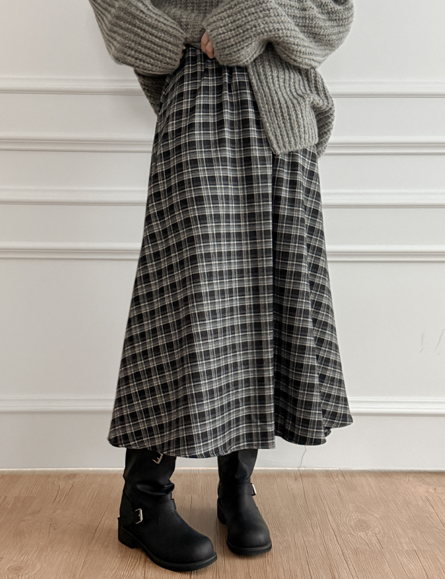 페이든 겉기모 チェック ゴム ロングスカート 84949