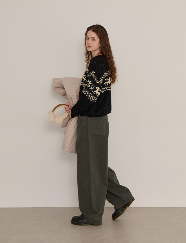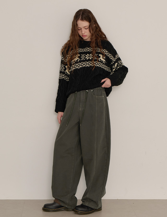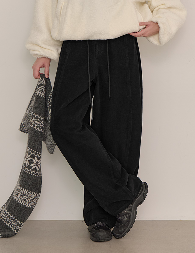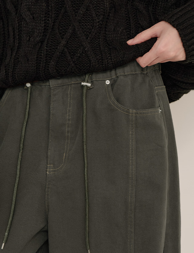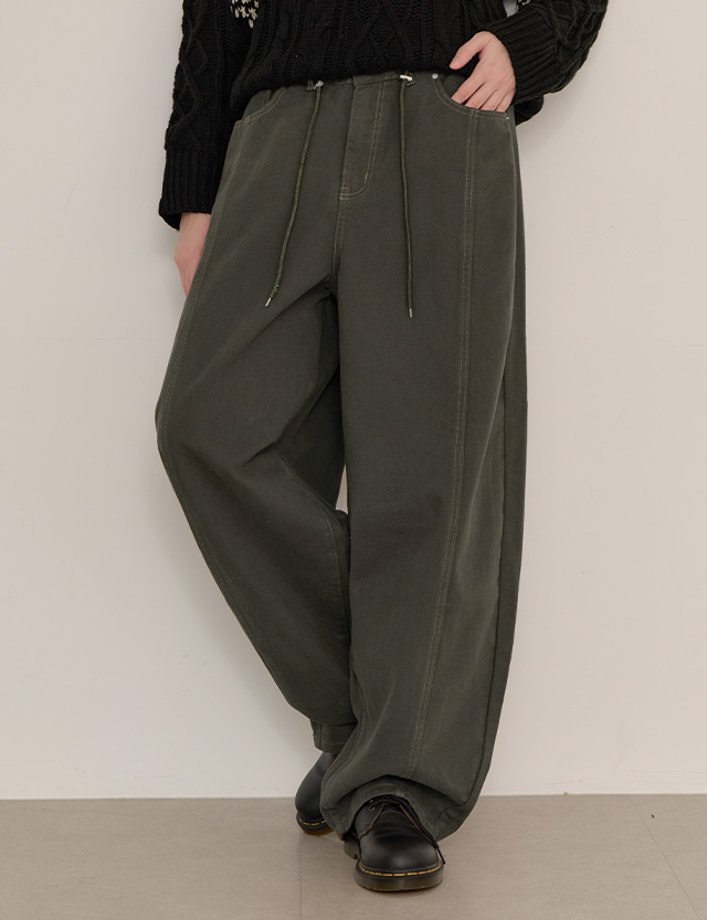 워크 로우 起毛 バルン 커브드 ゴム パンツ 85009