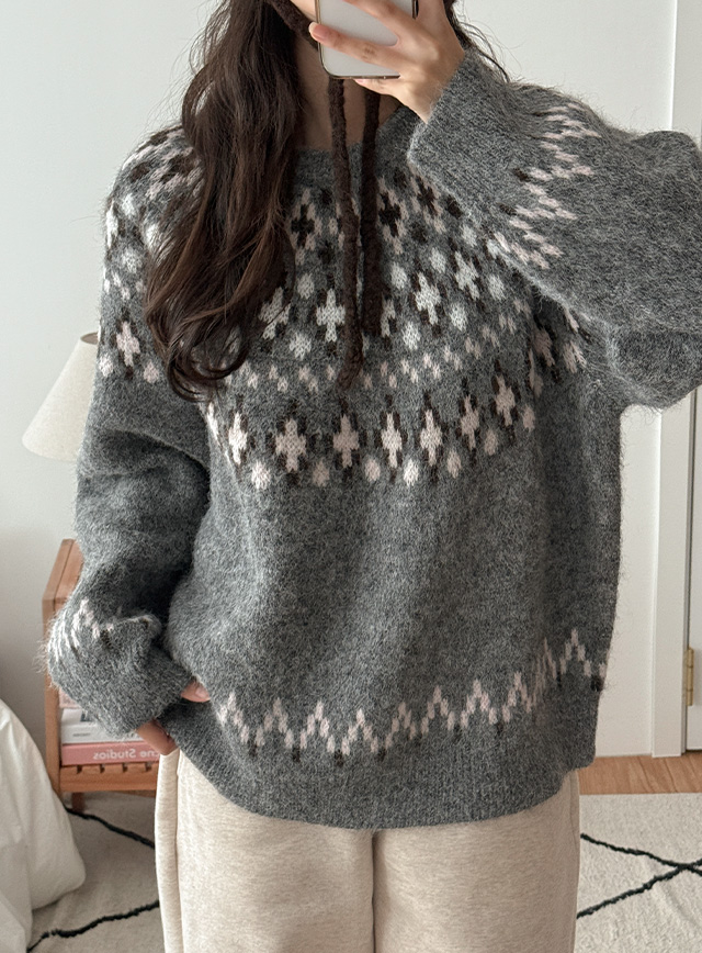 크림라떼 ノルディック ルーズフィット ウール ニット 84758