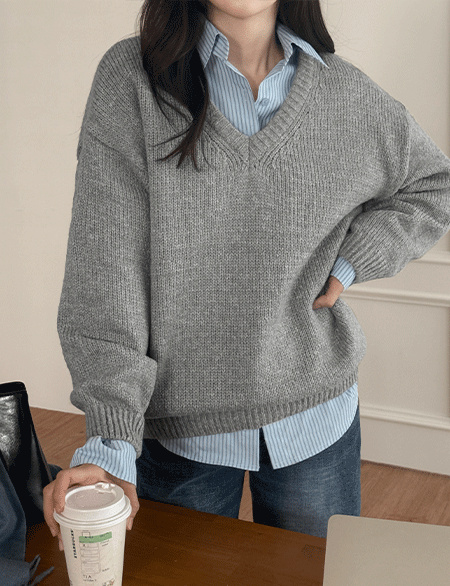 홀셋 ベーシック ルーズフィット Vネック ニット 84862