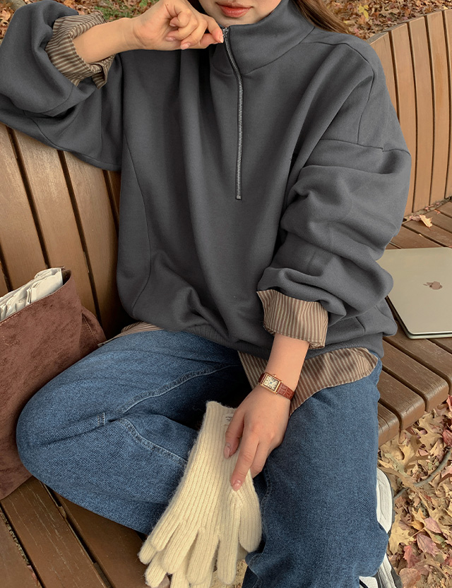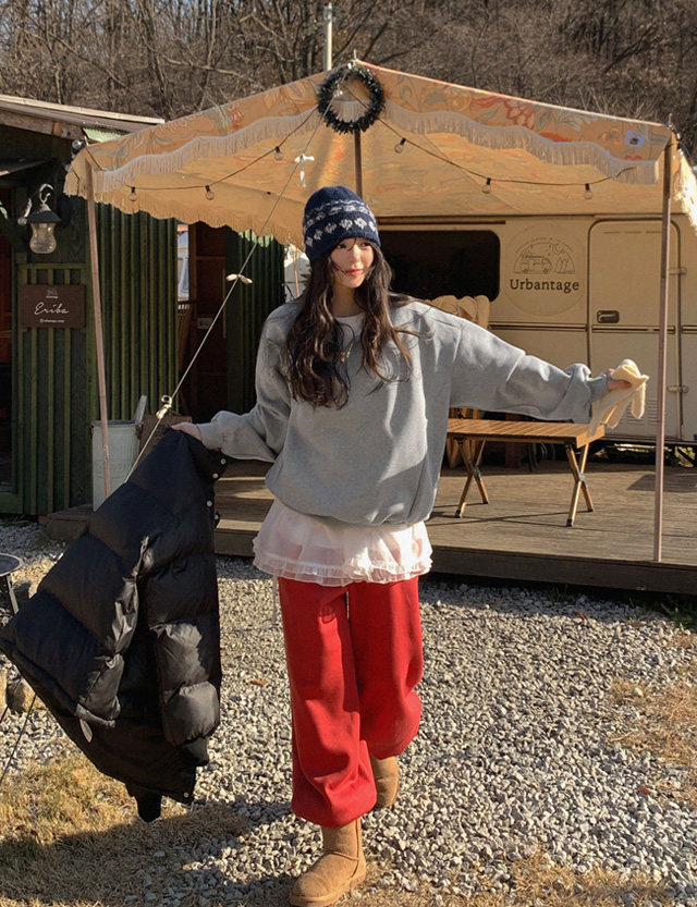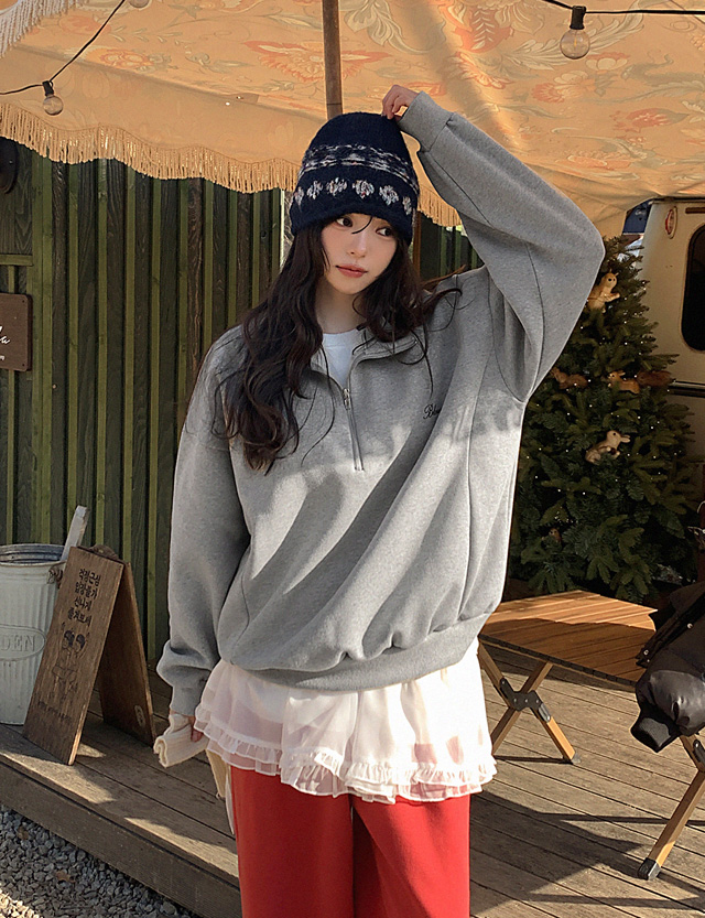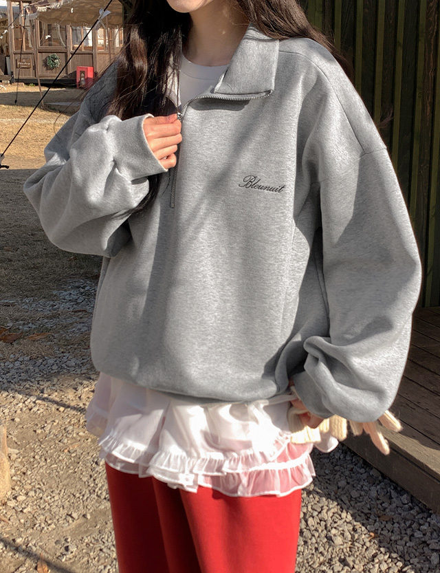 블루닛 刺繍 アノラック 起毛 ルーズフィット スウェット 85066