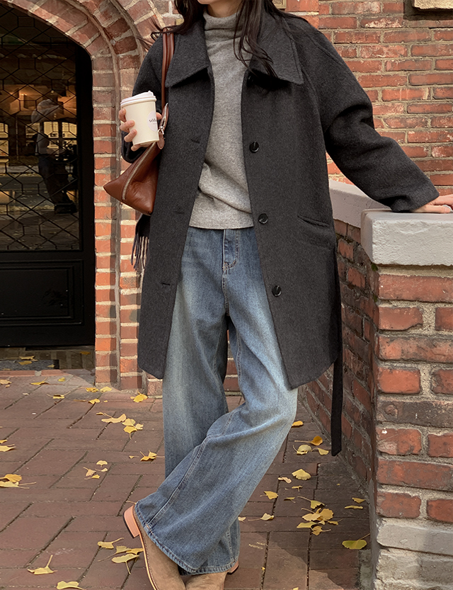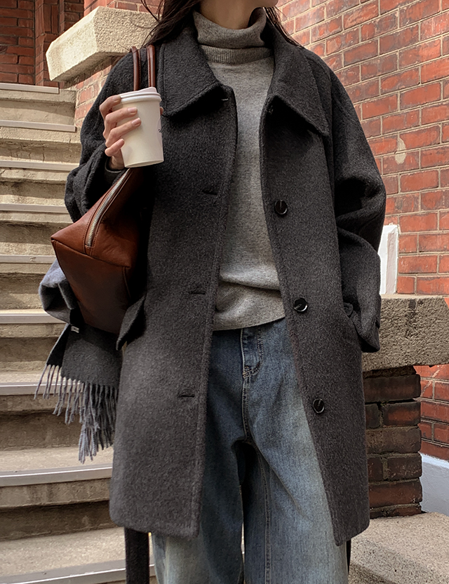 포멀한 ルーズフィット ウール ハーフ コート 84979