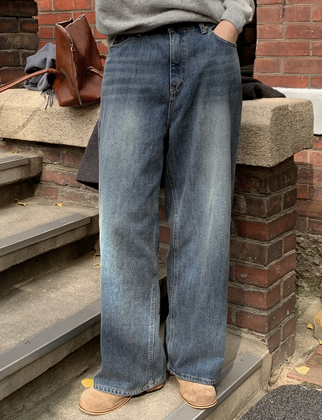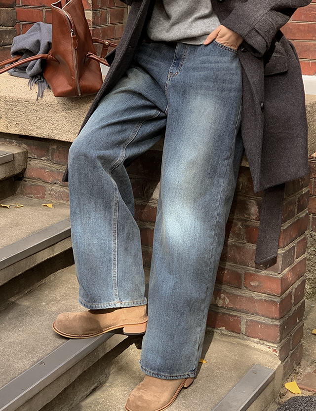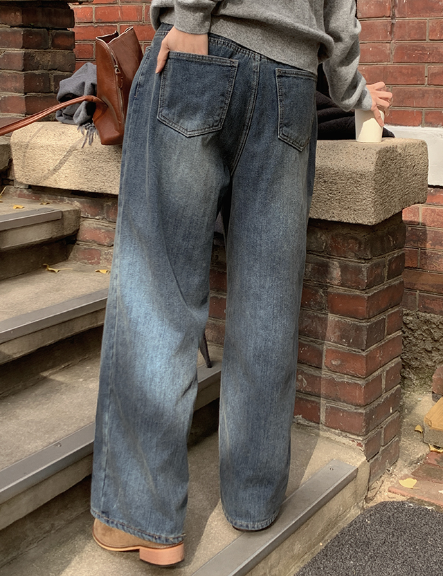 디블링 뒷밴딩 起毛 세미와이드 デニム パンツ 85132