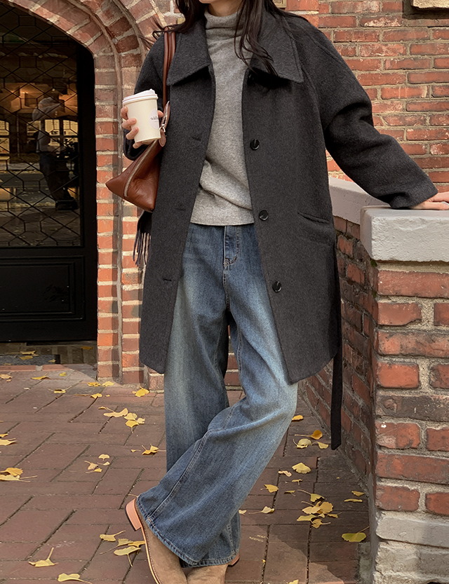 포멀한 ルーズフィット ウール ハーフ コート 84979