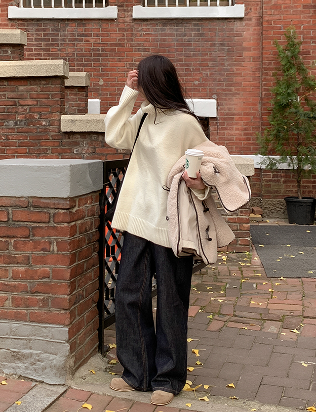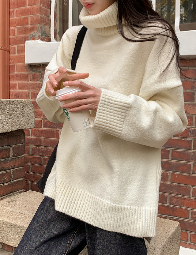 왈라드 ルーズフィット 언발 포근 タートルネック ニット 85130