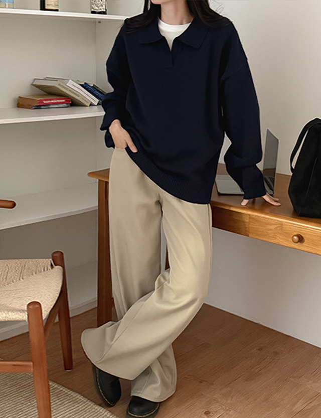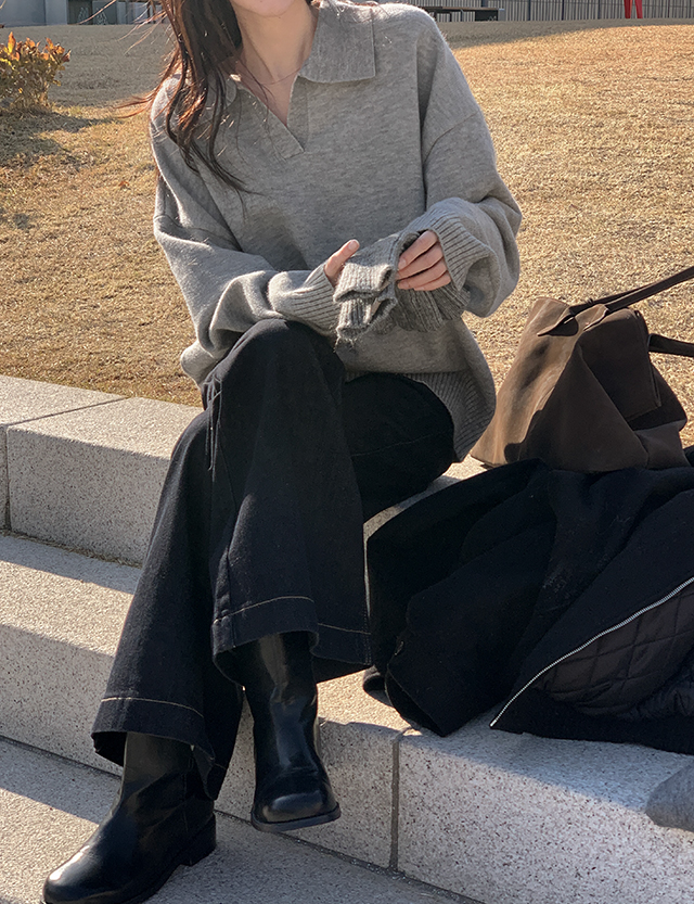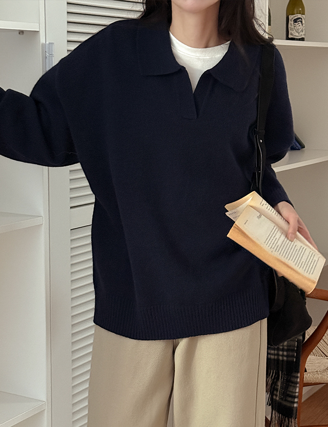데일리템 반오픈 カラー ルーズフィット ニット 85126