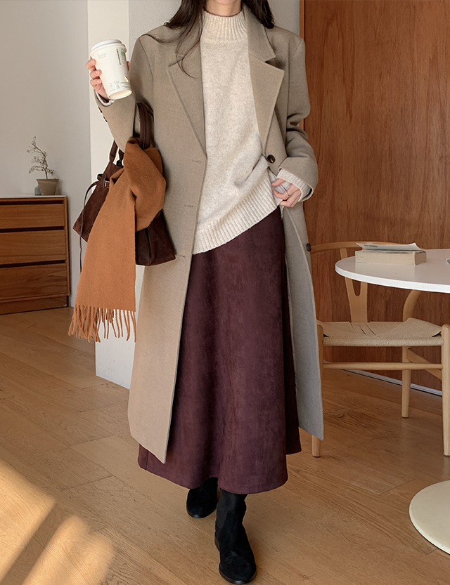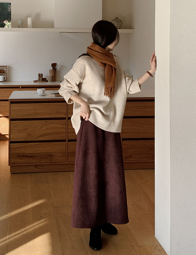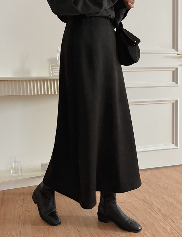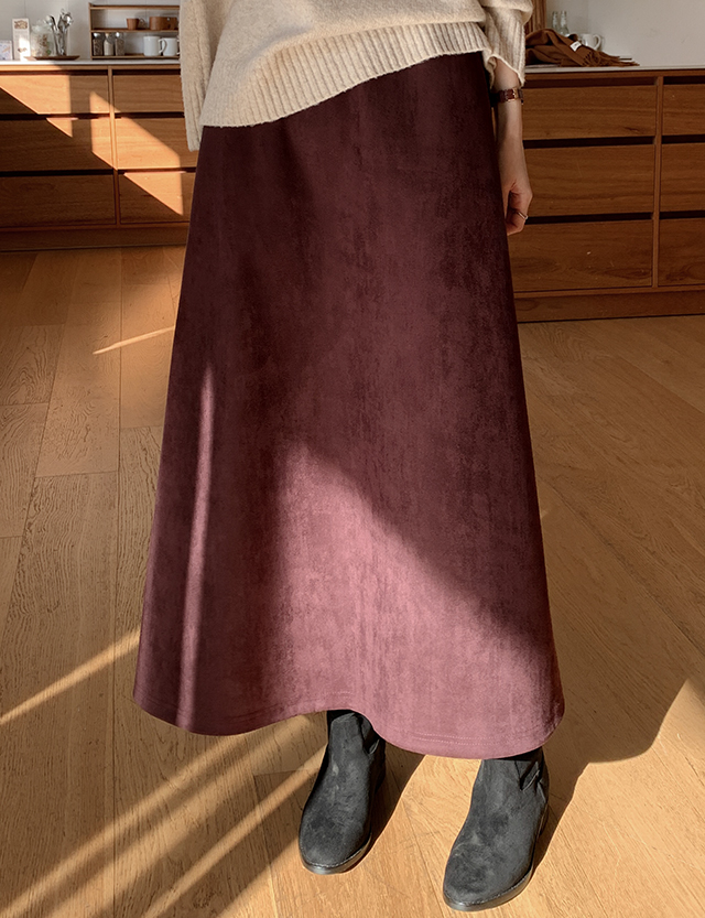 탱탱스판 スウェード ゴム ロング スカート 85182