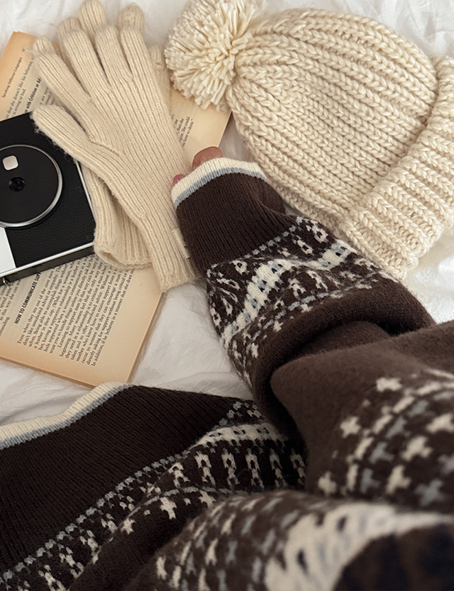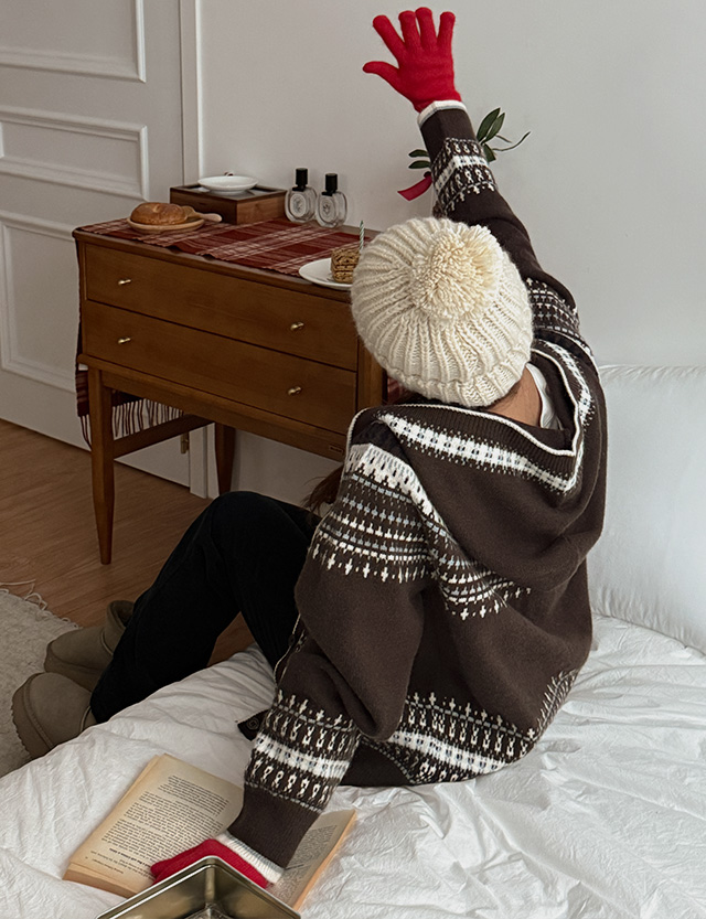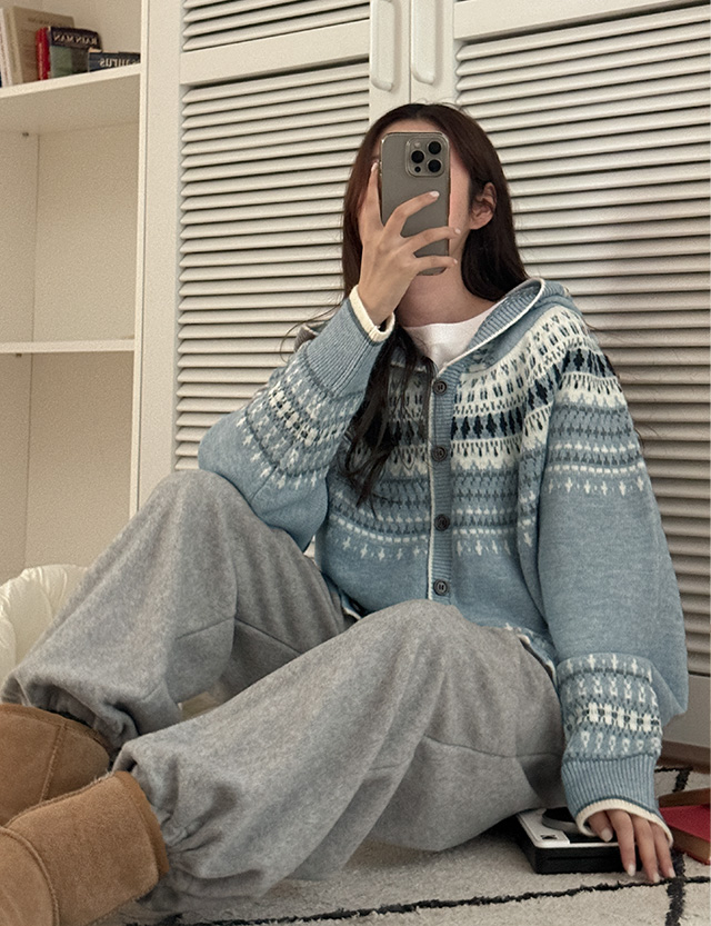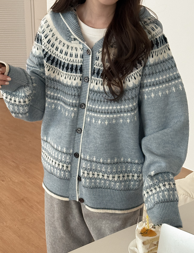 윈터풀 ノルディック フード ウール ニット カーディガン 85234