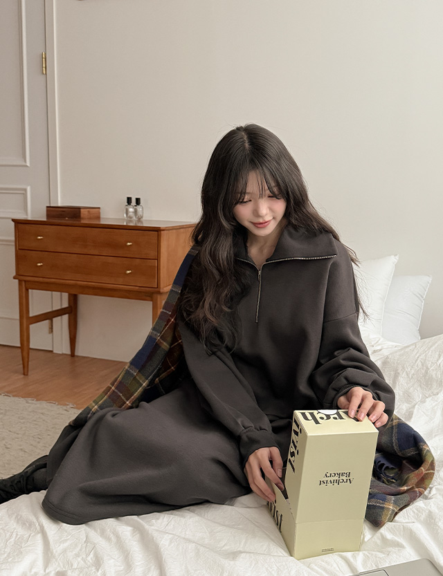 포켓포 ルーズフィット アノラック 起毛 ロング ワンピース 85299