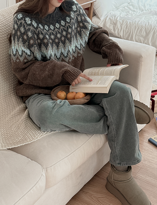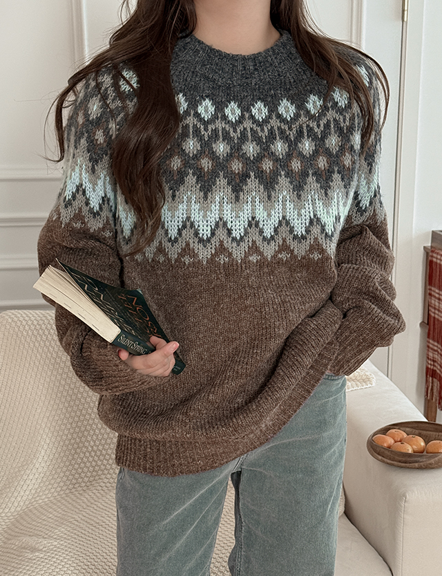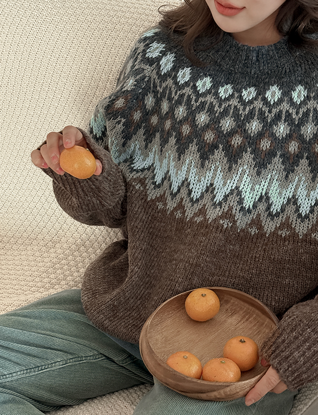 리스지 ルーズフィット ノルディック ラウンド ニット 85248