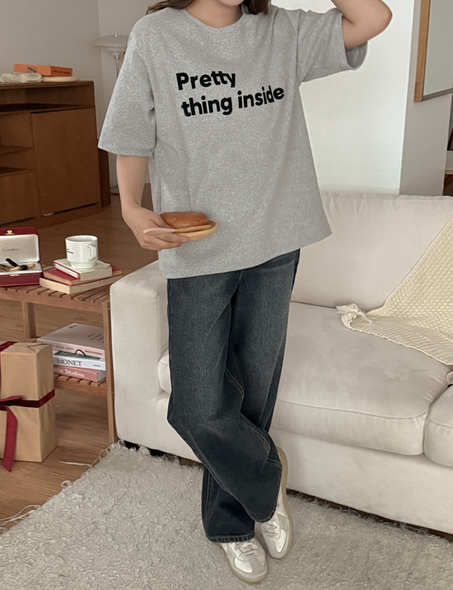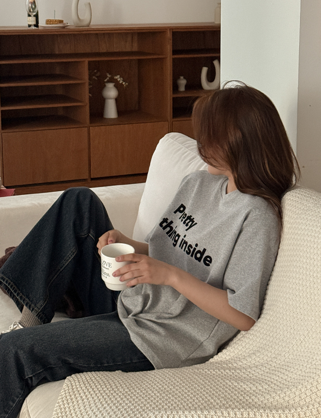 제터스 起毛 레터링 半袖 ティーシャツ 85252