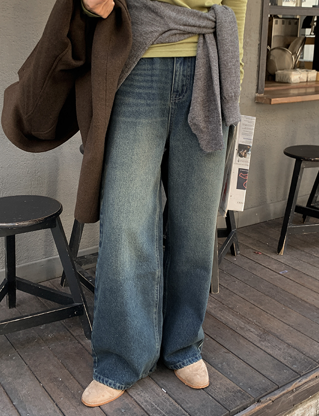 아무옷에나 찰떡 ワイド 뒷밴딩 起毛 デニム パンツ 85087
