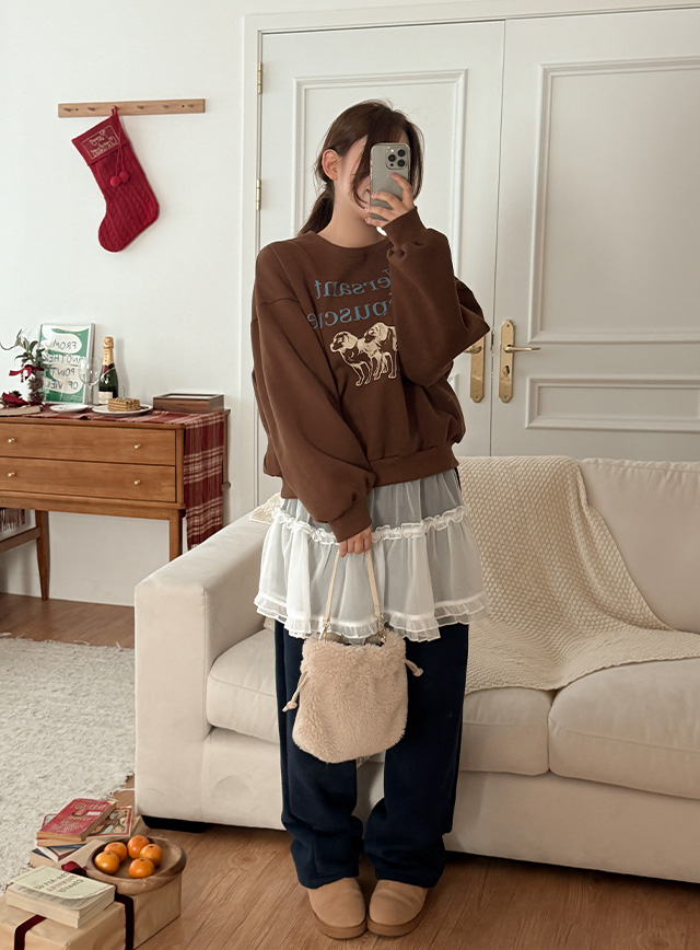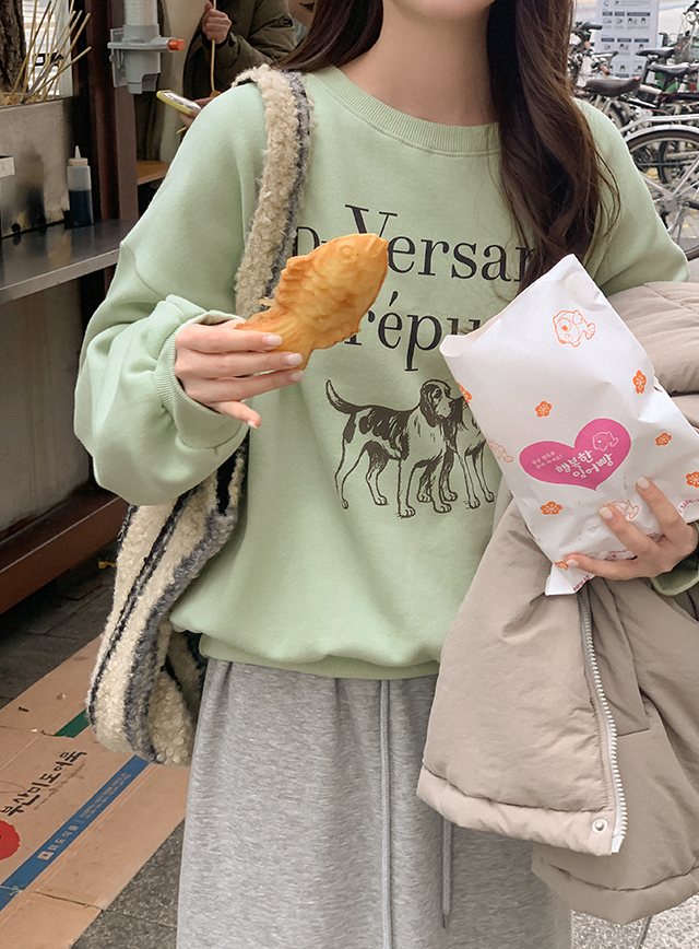 [아방핏]코지퍼피 ルーズフィット 起毛 プリンティング スウェット 85232