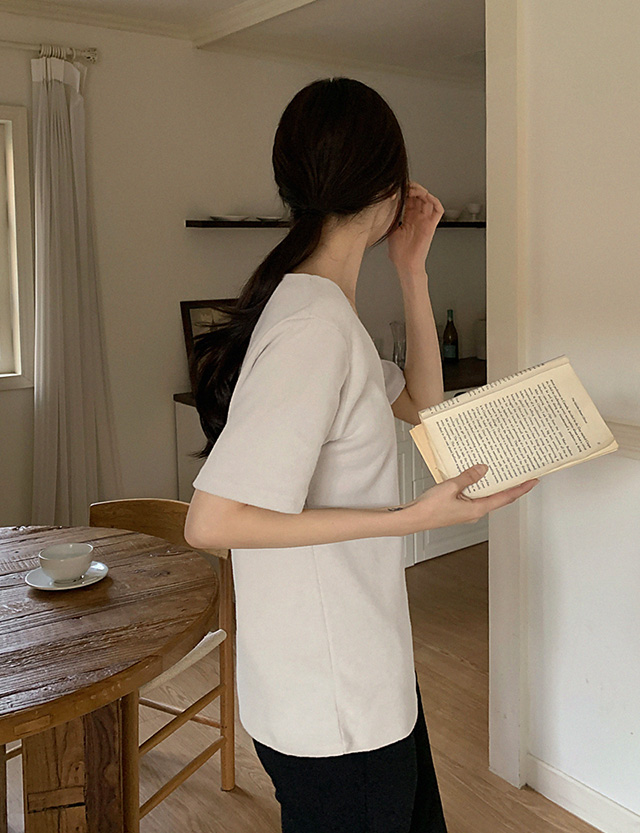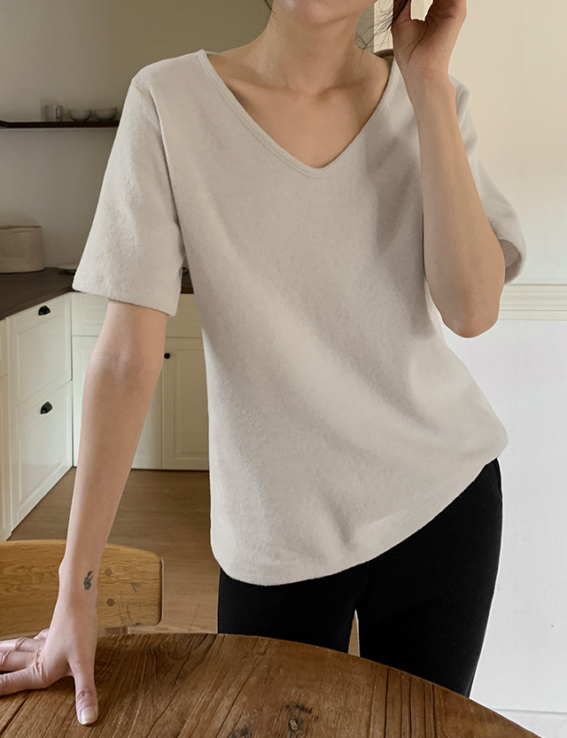 보송 Vネック 起毛 半袖 ティーシャツ 85279